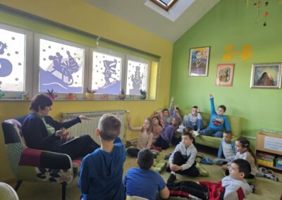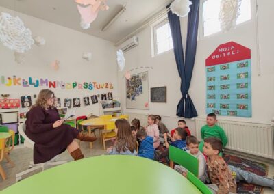 Naša je knjižnica sudjelovala u čitateljskoj avanturi Rođeni za čitanje, “15 po 15: cijela Hrvatska čita djeci”. Učenicima 1. razreda i predškolskoj grupi djece u vrtiću čitali su knjižničari, učiteljica, tete u vrtiću, ravnateljica, mama, tata, baka, gradonačelnik, spremačica i učenici. Uživali smo u pustolovinama vuka koji se zove Vuk i naučili koliko nam je svima važna sreća, prijateljstvo, ljubav, putovanje i naravno ČITANJE! Zadnji dan čitanja Rita, učenica 3. razreda pročitala je priču Vuk koji je želio postati umjetnik, a zatim smo se prisjetili svih priča koje smo čitali, svoje smo dojmove izrazili crtežima i sami smo se okušali kao umjetnici modelirajući našeg prijatelja Vuka. Uz svaku završnicu ide i svečanost pa smo se za kraj počastili slasticama i fotografirali se za uspomenu. Bilo nam je lijepo i jedva čekamo novi izazov “15 po 15: cijela Hrvatska čita djeci”. A dok čekamo, smišljamo vlastite čitateljske izazove, čitamo i učimo koliko nam je čitanje važno.