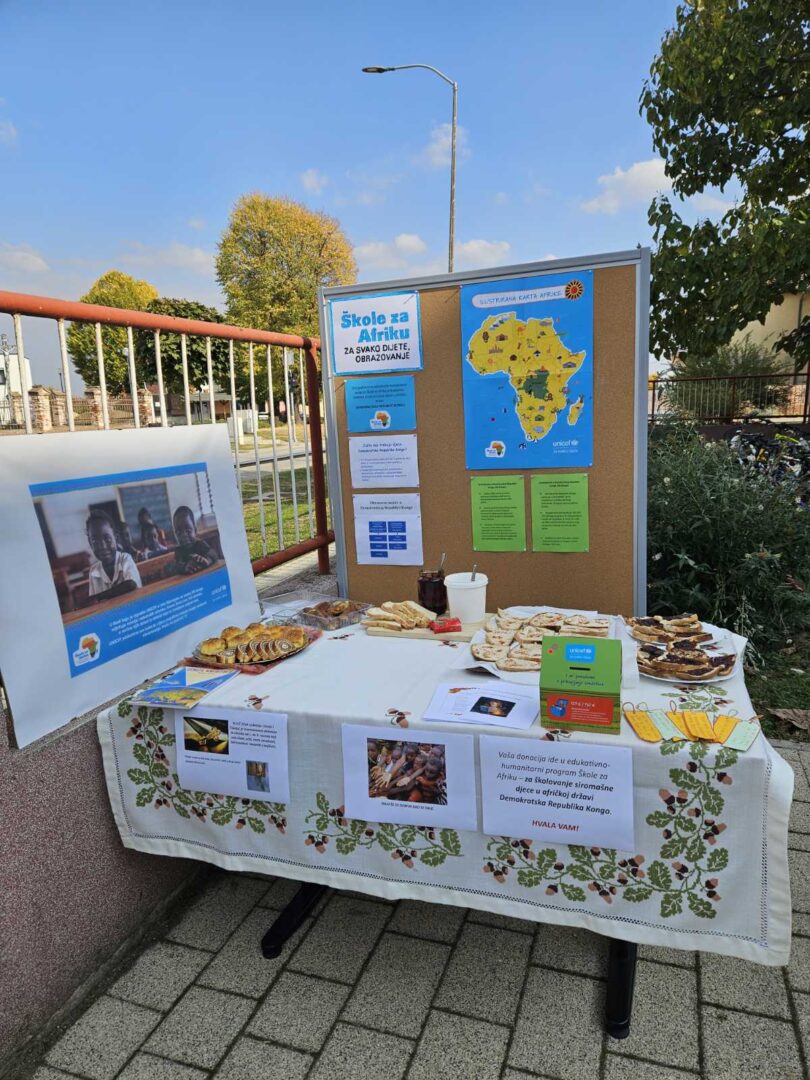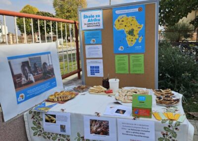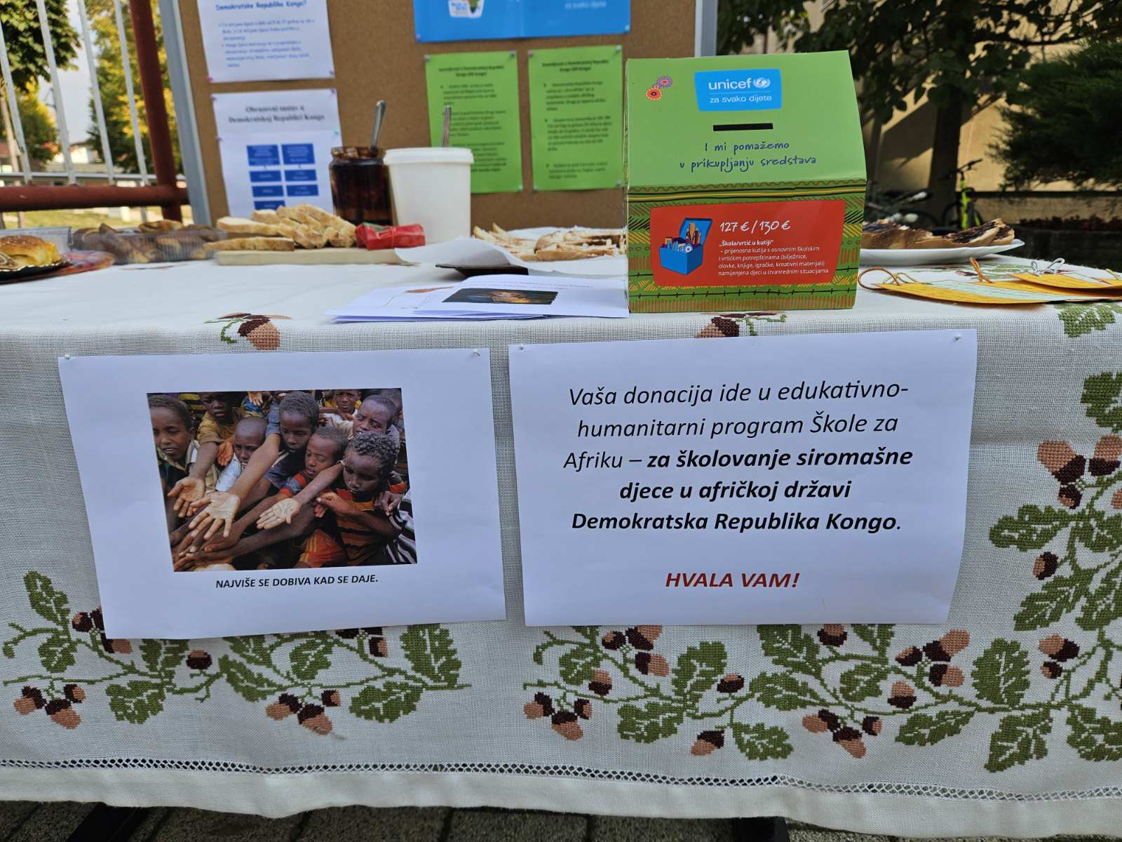 Počeli smo s provedbom edukativno-humanitarnog projekta Škole za Afriku za ovu nastavnu godinu. 17. listopada, na Međunarodni dan borbe protiv siromaštva i socijalne isključenosti, školska koordinatorica programa Škole za Afriku Katica Novoselac predstavila je računalnom prezentacijom svim učenicima i zaposlenicima škole ciljeve i svrhu projekta te aktivnosti koje će se provoditi u našoj školi kako bi se djeci Demokratske Republike Kongo pružio bolji život, a članovi izvannastavne aktivnosti KLJUČ (Klub ljubitelja Učenja i Čitanja) na školskoj svečanosti Dani kruha – Dani zahvalnosti za plodove zemlje koja je održana 16. listopada prikupljali su donacije nudeći razne krušne proizvode i slastice učenicima i zaposlenicima škole, roditeljima i ostalim članovima lokalne zajednice.