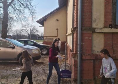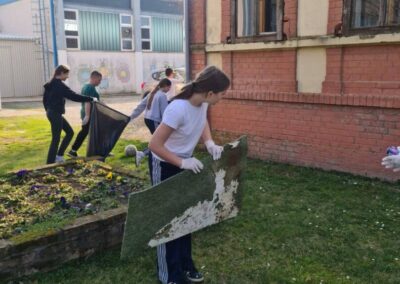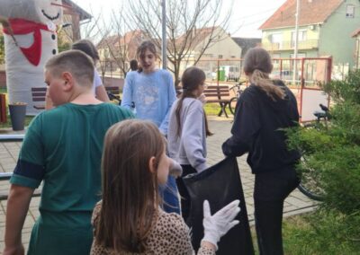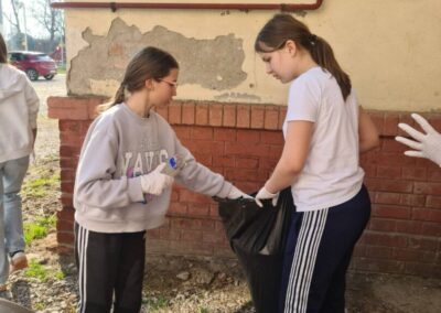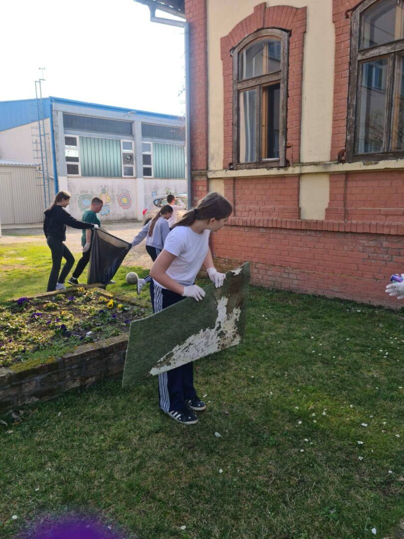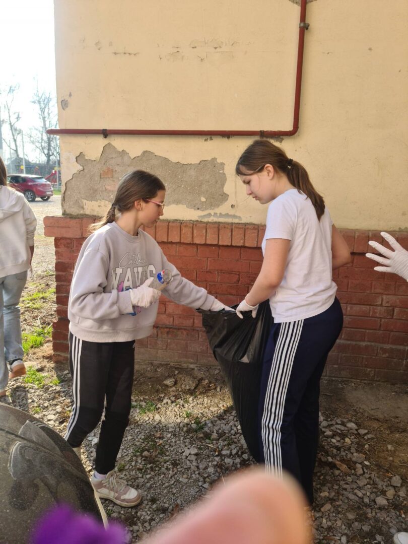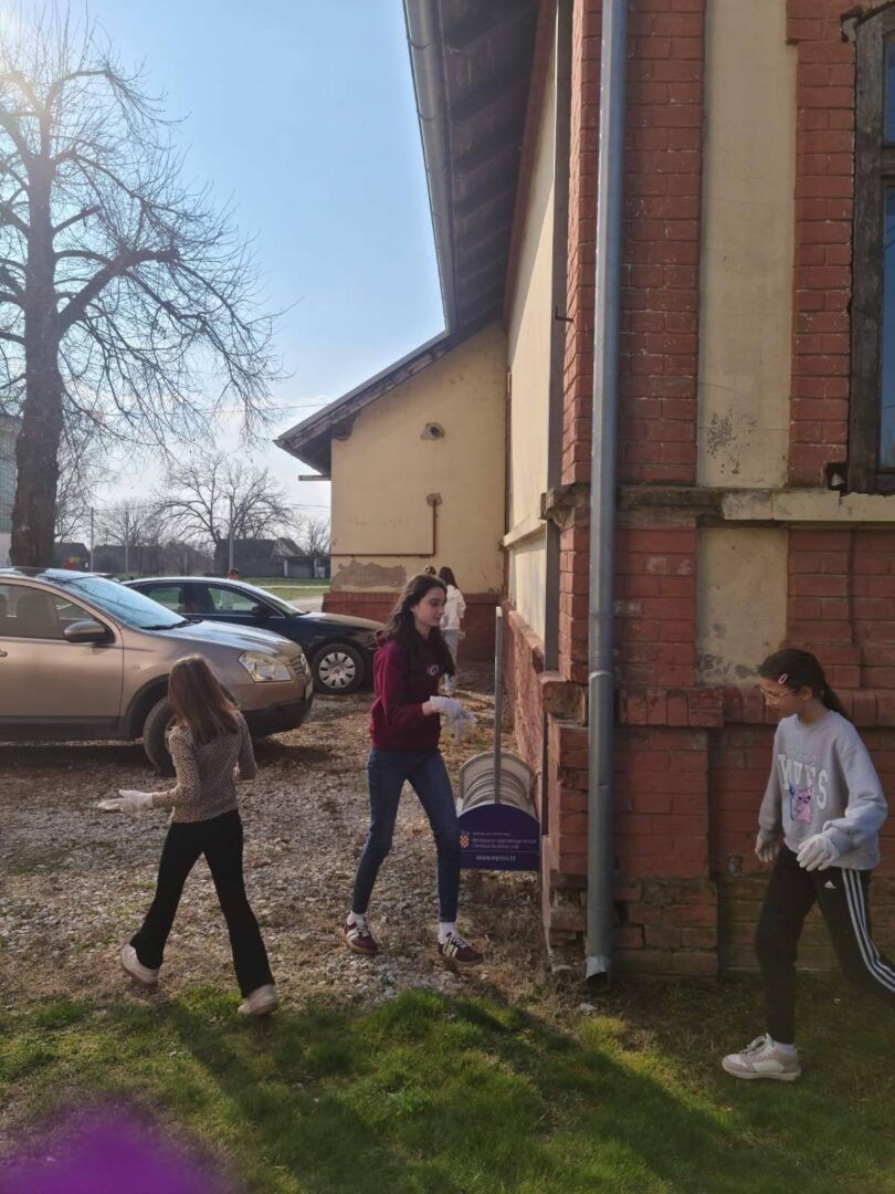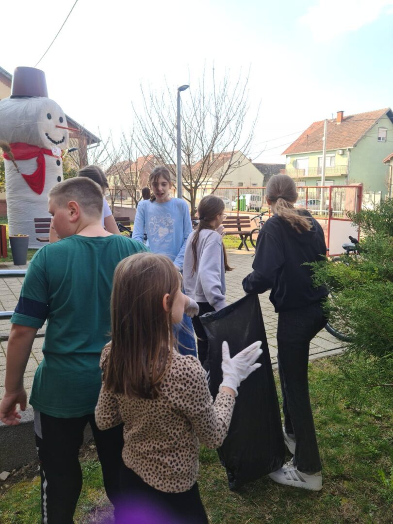 Članovi B1 aktivnosti Školski volonterski klub čistili okoliš škole. Iako su prije njih isto učinili učenici 2. razreda, na fotografijama ćete vidjeti da smeća još ima. Zato volonteri u ime svih nas upućuju molbu svima koji dolaze na školsko igralište da čuvaju okoliš i održavaju urednim prostor na kojem se mnogi igraju i druže.