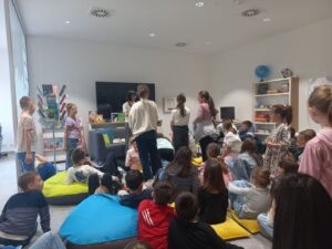 Učenici od 1. do 4. razreda sudjelovali su 10. travnja na Festivalu dječje knjige u Vinkovcima gdje su imali priliku upoznati književnice Martinu Huber i Maju Šimleša te ilustratoricu i književnicu Anu Salopek. Kroz zanimljivo druženje, razgovor, aktivno uključivanje u čitanje, kviz i upoznavanje žirafe Suli učenici su proširili svoje znanje o književnosti i ilustraciji te dodatno razvili ljubav prema knjizi i čitanju.