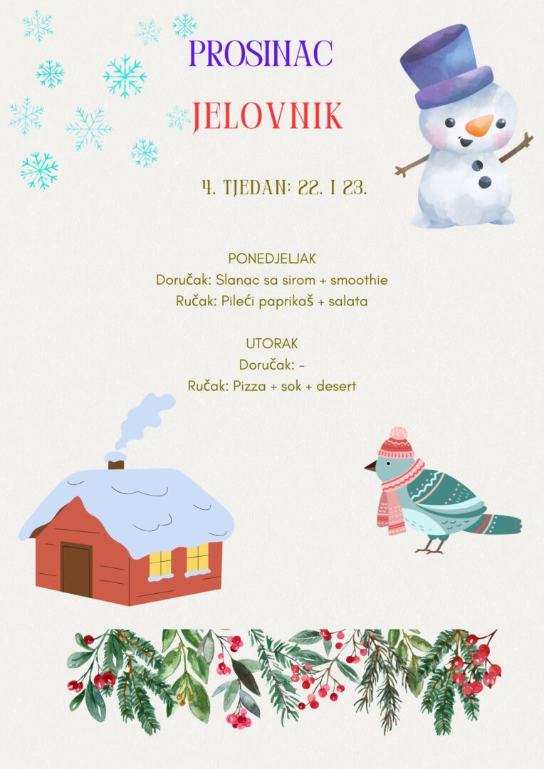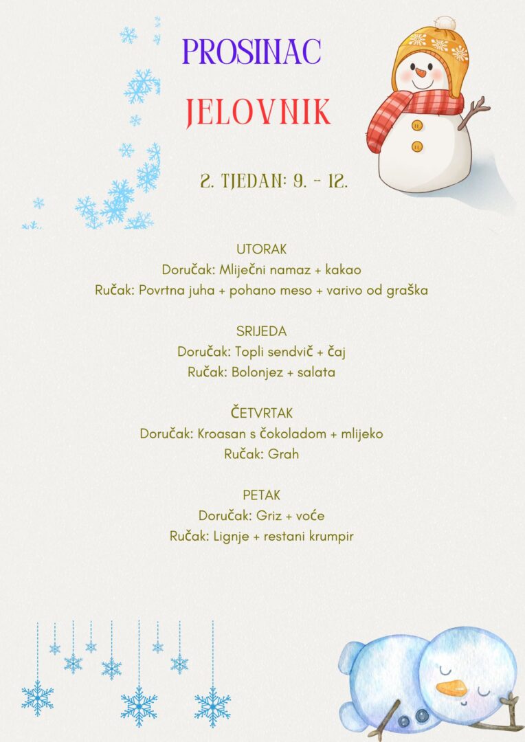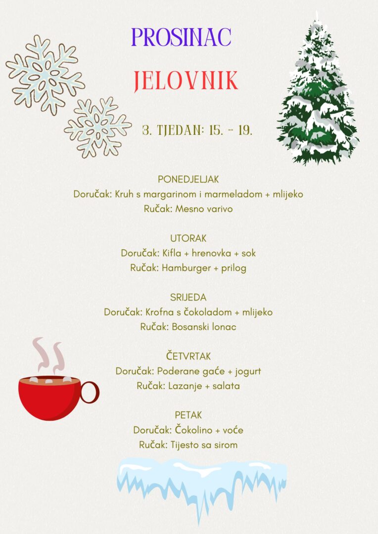 ŠKOLSKI JELOVNIK  ZA PROSINAC