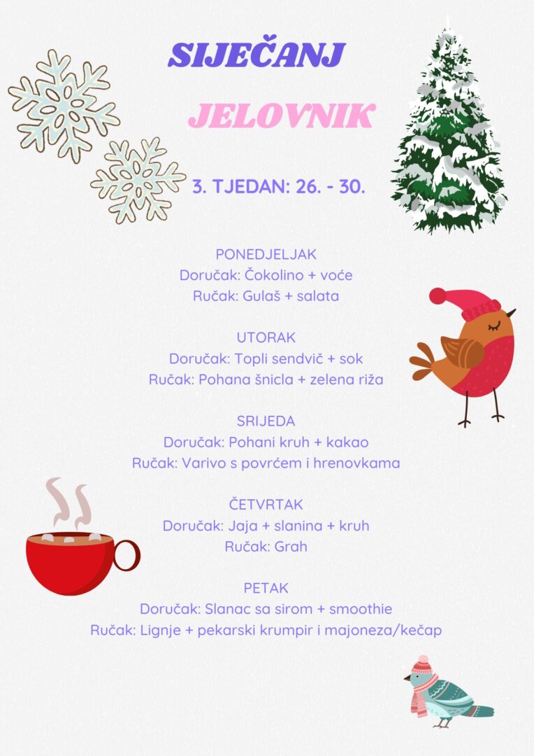 ŠKOLSKI JELOVNIK  ZA SIJEČANJ