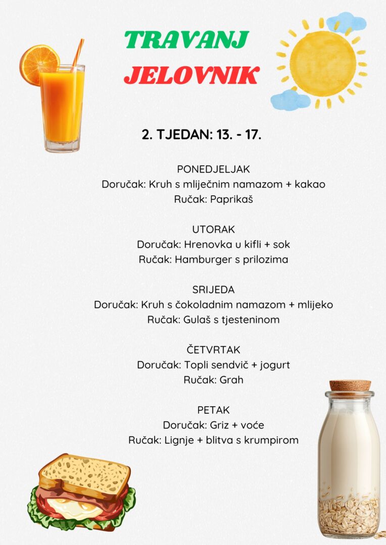 ŠKOLSKI JELOVNIK ZA TRAVANJ 1. tjedan 2. tjedan 3. tjedan 4. tjedan ŠKOLSKI JELOVNIK ZA OŽUJAK 1. tjedan 2. tjedan 3. tjedan 4. tjedan ŠKOLSKI JELOVNIK ZA VELJAČU 1. tjedan 2. tjedan 3. tjedan 4. tjedan ŠKOLSKI JELOVNIK ZA SIJEČANJ 1. tjedan 2. tjedan 3. tjedan ŠKOLSKI JELOVNIK ZA PROSINAC 1. tjedan 2. tjedan 3. tjedan 4. tjedan ŠKOLSKI JELOVNIK ZA LISTOPAD 1. tjedan 2. tjedan 3. tjedan 4. tjedan 5.tjedan ŠKOLSKI JELOVNIK ZA RUJAN 1. tjedan 2. tjedan 3. tjedan 4. tjedan . EU Učinkoviti ljudski potencijali EU Fondovi EU CARNET EU konkurentnost i kohezija