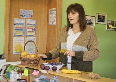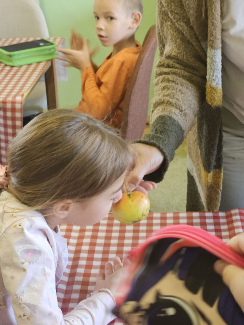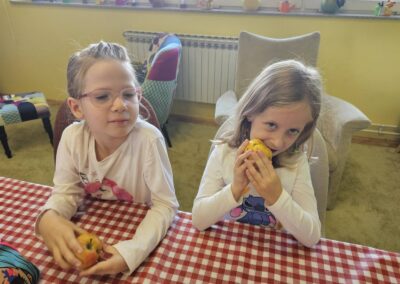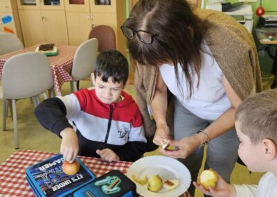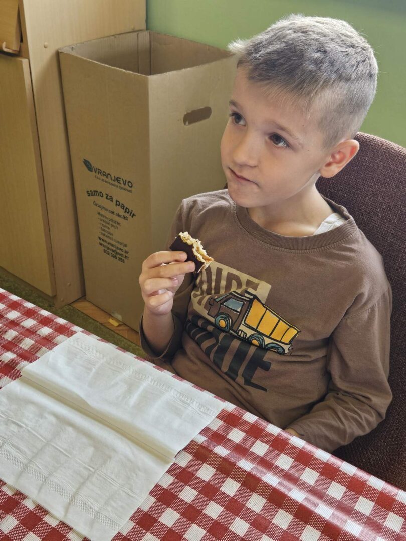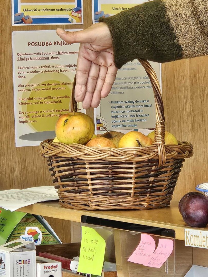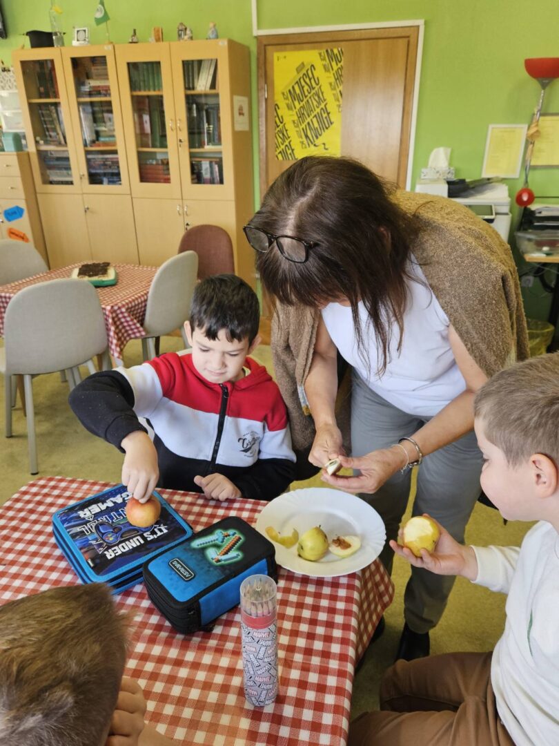 Danas smo u školi obilježili Svjetski dan jabuka. Učiteljica 1. razreda Snježana Matak i školska knjižničarka Katica Novoselac pripremile su za učenike 1. razreda raznovrsne aktivnosti kojima su učenike upoznale s jabukom kao „kraljicom voća“. U igrokazu „Đuro zvani Crv“ adaptiranom prema istoimenoj pripovijetki Zorana Pongrašića učenici su naučili koliko je istinita ona stara narodna „Dome, slatki dome!“ bez obzira ako je taj dom i kisela crvljiva jabuka. Kušali su domaću jabuku, uzgojenu bez ikakvih kemijskih sredstava i osladili se domaćom pitom od jabuka te obećali da će jesti više jabuka!